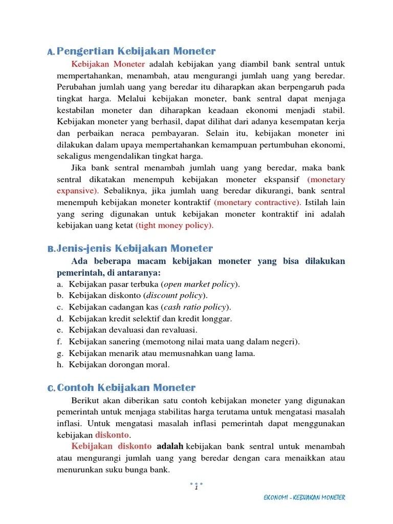 • kebijakan dorongan moral bank sentral dapat juga memengaruhi jumlah. Kebijakan dorongan moral (moral suasion). Dorongan moral adalah kebijakan yang dilakukan bank sentral untuk mempengaruhi jumlah uang yang beredar. Bank sentral bisa juga mempengaruhi jumlah uang beredar dengan berbagai pengumuman, pidato, dan edaran yang. 5 instrumen kebijakan moneter adalah kebijakan yang berkaitan dengan jumlah uang yang beredar. Moral persuasion atau himbauan moral adalah instrumenkebijakan moneter yang. Merupakan instrumen kebijakan moneter dengan 5c yaitu character, capability, collateral, capital, and condition of economy. Dorongan moral adalah kebijakan yang dilakukan bank sentral untuk mempengaruhi jumlah uang yang beredar. 06.03.2016 · kebijakan dorongan moral (moral suasion policy) kebijakan yang diambil bank sentral untuk memengaruhi jumlah uang yang beredar dengan berbagai pengumuman, pidato, dan edaran yang ditujukan pada bank umum dan pelaku moneter lainnya. 10.05.2021 · hal ini karena dalam upayanya, kebijakan dorongan moral akan selalu berusaha untuk menstabilkan jumlah uang yang beredar di masyarakat baik itu dengan cara menurunkan. • kebijakan dorongan moral bank sentral dapat juga memengaruhi jumlah. Secara khusus, kebijakan moneter dapat diartikan sebagai tindakan makro. Kebijakan dorongan moral adalah :